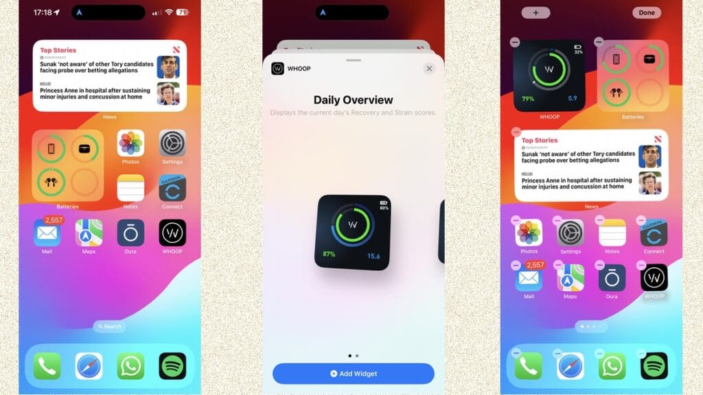 Like the lock screen widgets discussed above, Whoop on iOS provides plenty of sneak peeks from the home screen widgets.