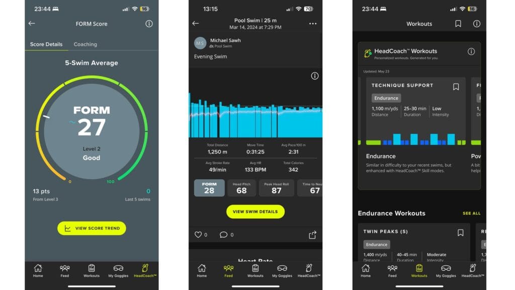 First up is HeadCoach – a series of personalized workouts that can be followed on the goggles in real-time to help you work on elements like swimming technique, power, and building your endurance in the water.