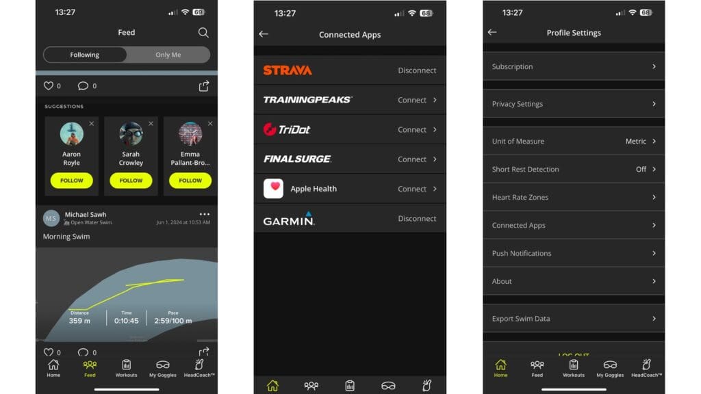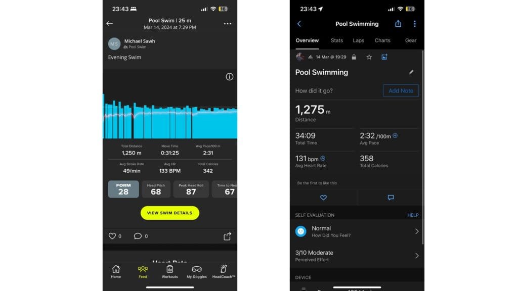 When the Form goggles first launched, the companion smartphone app was focused on showing you your stats, letting you see other user’s latest swims, and letting you adjust goggle settings.