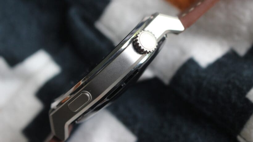 On the right side of the case, there is a single button and a rotating crown, which is similar to the setup on the Honor Watch 4 Pro for when you prefer not to navigate using the touchscreen. At the back, you’ll find the optical sensor that tracks heart rate and monitors SpO2 levels. The leather strap that comes with our model certainly enhances its overall classy appearance and can be easily replaced with a more exercise-friendly fluoroelastomer band.