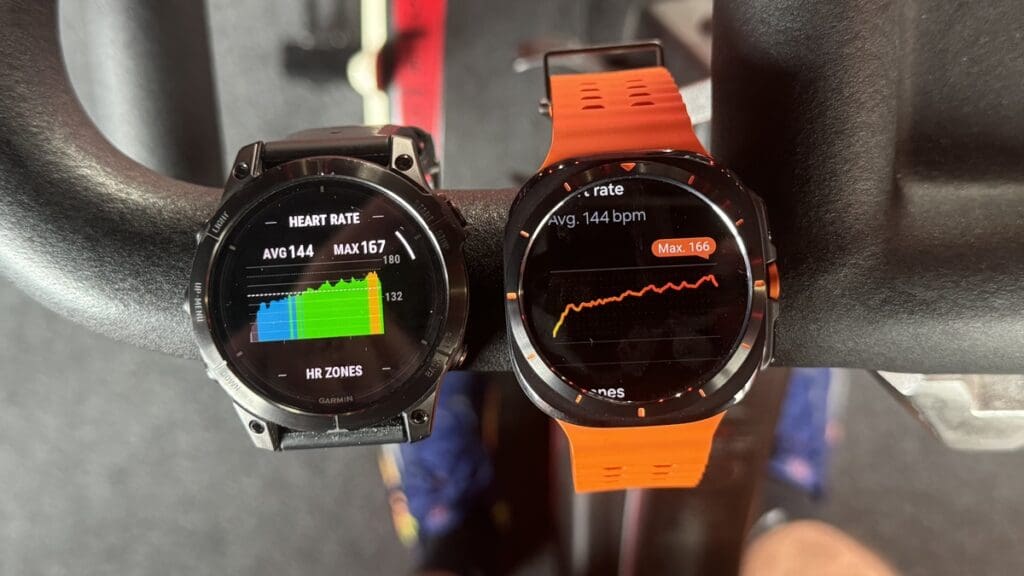 Heart rate averages were always within 1BPM of the Garmin, and it only suffered one maximum HR spike throughout testing (and even this was brief enough to affect the average to any significant degree).
