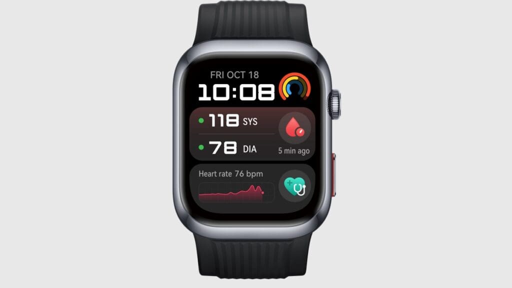 It features Ambulatory Blood Pressure Monitoring (ABPM) for 24-hour blood pressure tracking, via an inflatable cuff built into the watch strap, so you don’t need to fix up or carry any extra equipment.