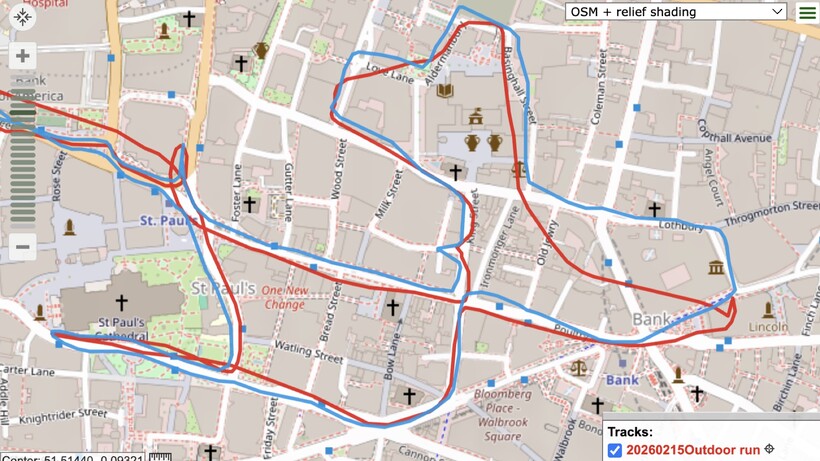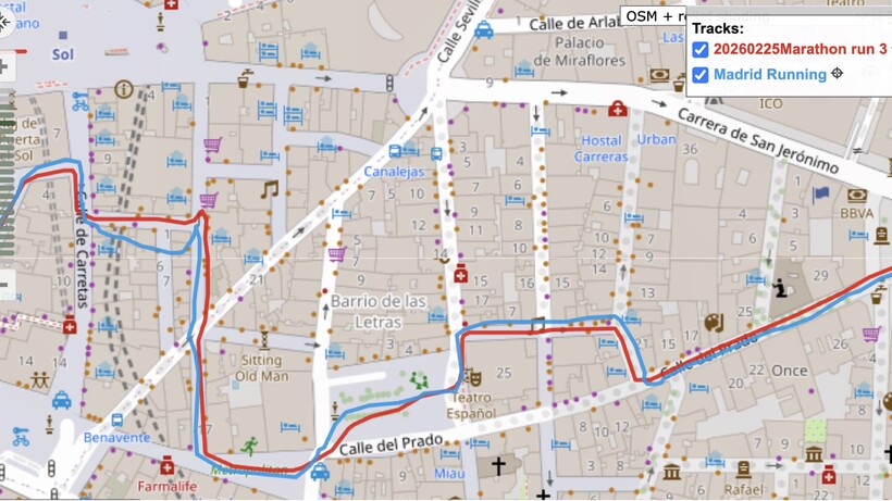 We used the Runner 2 for various runs and intensities, such as a 10km race and a track session. And based on GPS data, it tracked distances accurately for most runs when compared to Garmin’s Forerunner 970. You can see a glimpse of this in the example above, in which the two watches stayed very closely aligned during a gentle spin around Madrid.