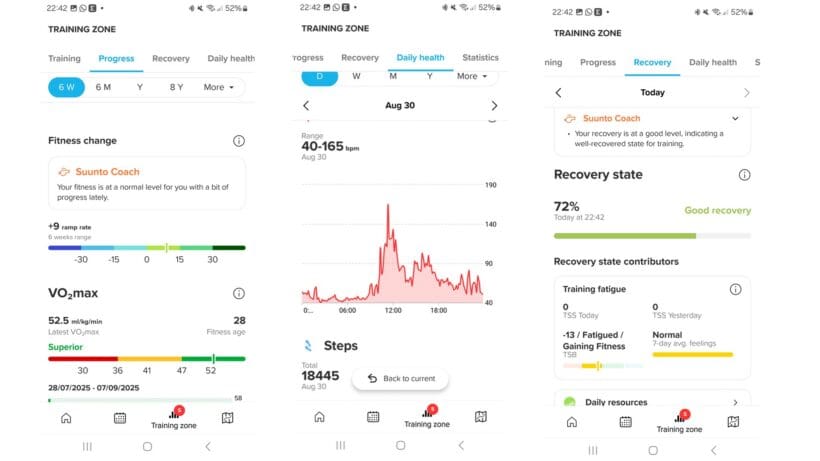 Head inside the Training section of the Suunto app, and you’ll find recovery data along with how the solid sleep tracking support affects that recovery. Daily health stats, such as heart rate and various scores, often use abbreviations that make the metrics and data difficult to understand and digest.