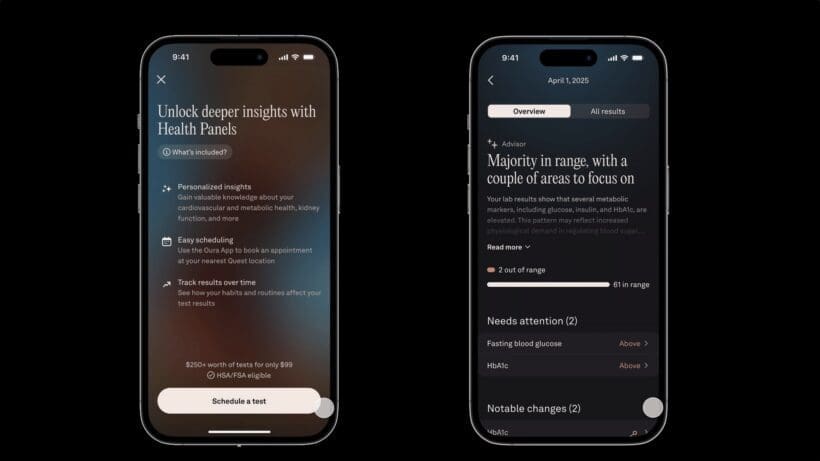 The service will link results from 50 different biomarkers to the ring’s continuous data on sleep, readiness, and activity. The results are clinician-reviewed and delivered within the app, where a new Oura Advisor feature allows users to ask AI-powered questions about their results and receive personalized tips.