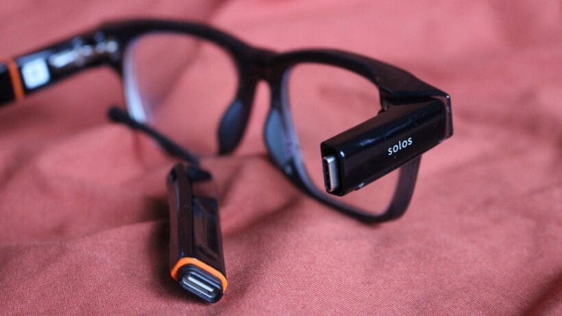 The added cameras are another clear sign of its added smarts. However, unlike Meta’s glasses, these stand out more and don’t feel as well integrated into the frames. Solos include capacitive touch controls on the arms to turn the glasses on and adjust the volume. This is also where you can attach the proprietary cable.