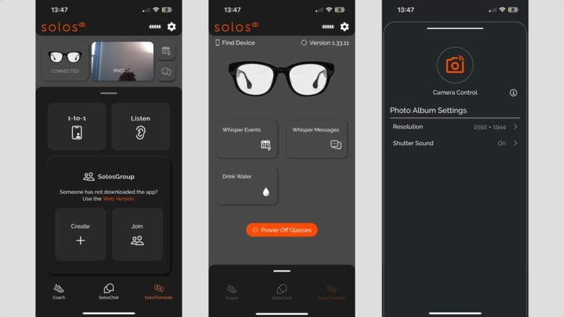There’s a useful translation feature, too, with the included group mode making it useful for meetings and such. We especially like Solos’ Whisper Message mode, which reads out messages and gives us one less reason to reach for our phone.