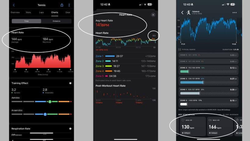 During a 90-minute tennis session, the Whoop MG reported an average heart rate of 130 BPM. In contrast, my Apple Watch Ultra 2 recorded 141 BPM, and a Garmin HRM-Pro Plus showed 144 BPM. It was the same picture in gym sessions using the Whoop Strength Trainer; one registered an average of 113 BPM on Whoop, compared to 122 BPM on the Garmin and 123 BPM on the Apple Watch.